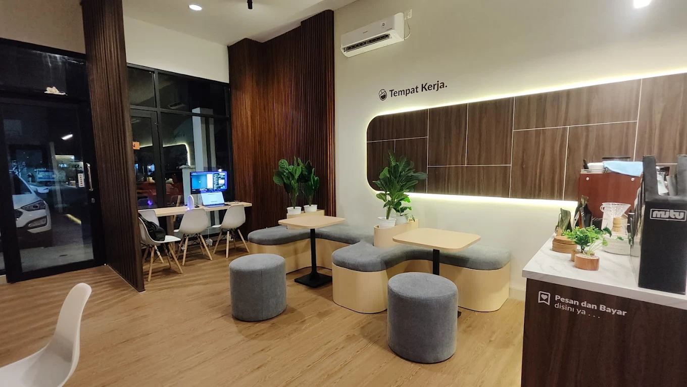 Ruang kerja & nongkrong dengan ambience hening, kopi premium terjangkau, dan banyak fasilitas menunjang produktifitas.